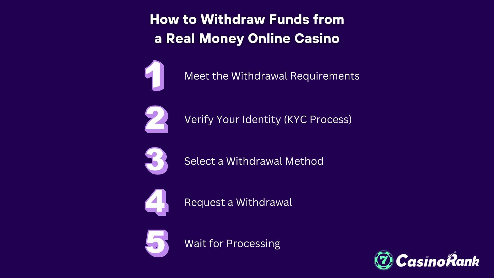 Innan uttag av riktiga pengar från ett onlinecasino måste spelare slutföra "Know Your Customer" (KYC)-verifieringsprocessen. Denna säkerhetsåtgärd hjälper till att förhindra bedrägerier, penningtvätt och spel av minderåriga, vilket säkerställer en säker och reglerad spelmiljö.