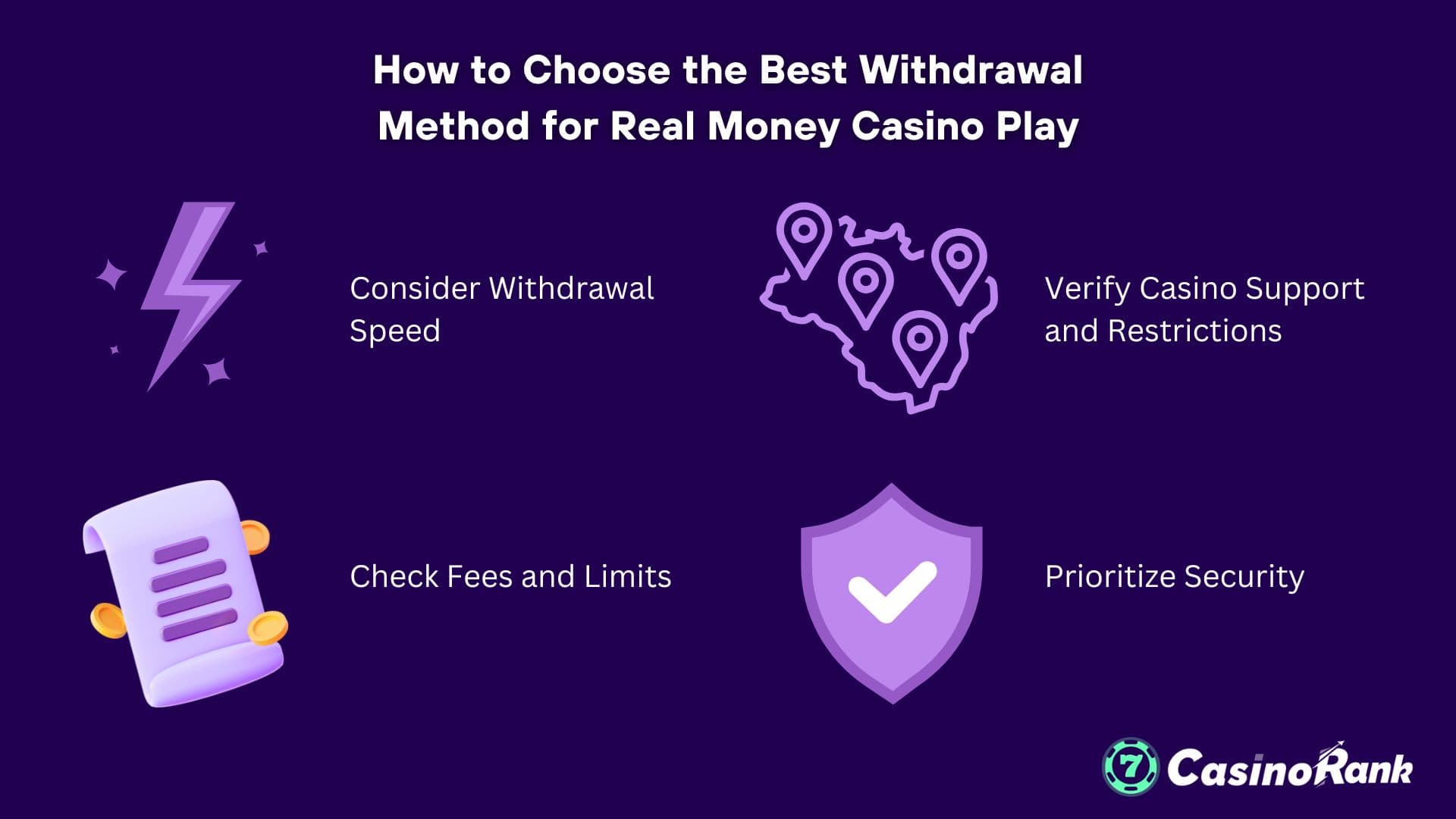 Att välja rätt uttagsmetod på ett onlinecasino med riktiga pengar är avgörande för snabba och problemfria utbetalningar. Så här väljer du det bästa alternativet baserat på hastighet, säkerhet och bekvämlighet: